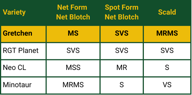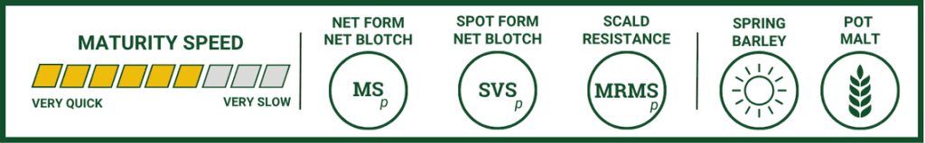 Gretchen has shown a significant step up in resistance to scald when compared to other key barleys on the market. We have also seen improvements in Net Form Net Blotch resistance when compared to RGT Planet.